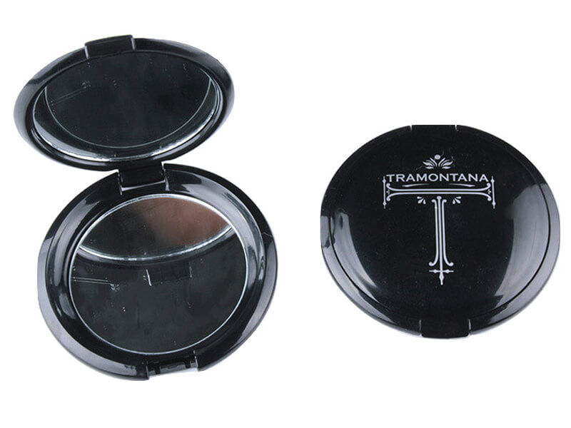 The surface of Round Pocket Mirror can do different colors, such as black, red, white, etc, any Pantone color number all can be injected. smooth surface does different colors, such as one color position, hot transfer printing, or hot stamp.